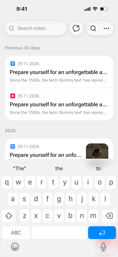 Swipe to share, move, or delete. Organize your notes with intuitive gestures.