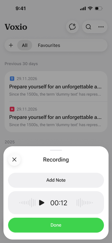 Turn every conversation into searchable, shareable insight. Voxio transcribes your recorded meetings with precision so your team stays aligned — and nothing important ever slips through.